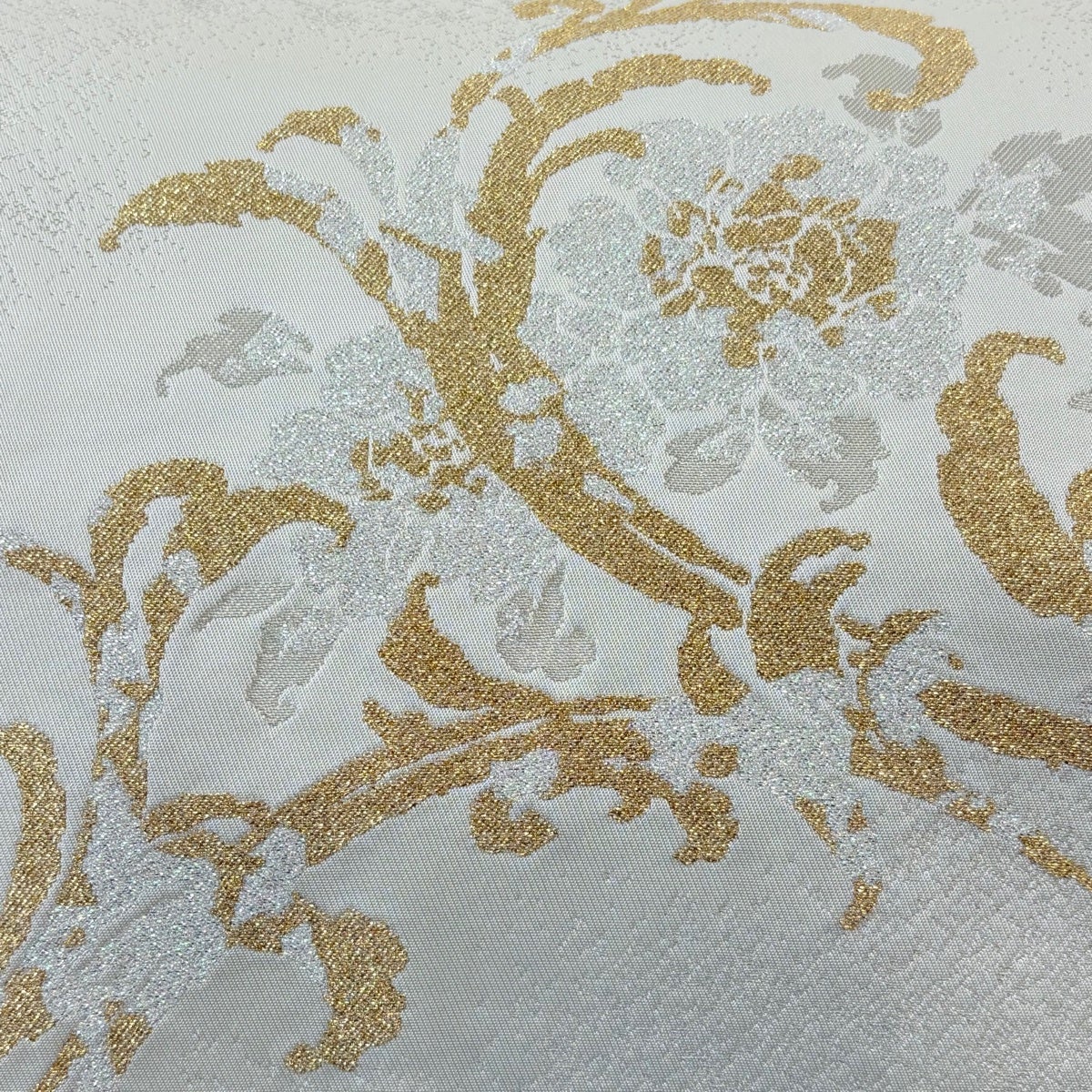 袋帯 秀品 関西仕立て 丸文 草花 金糸 箔 クリーム 六通 正絹