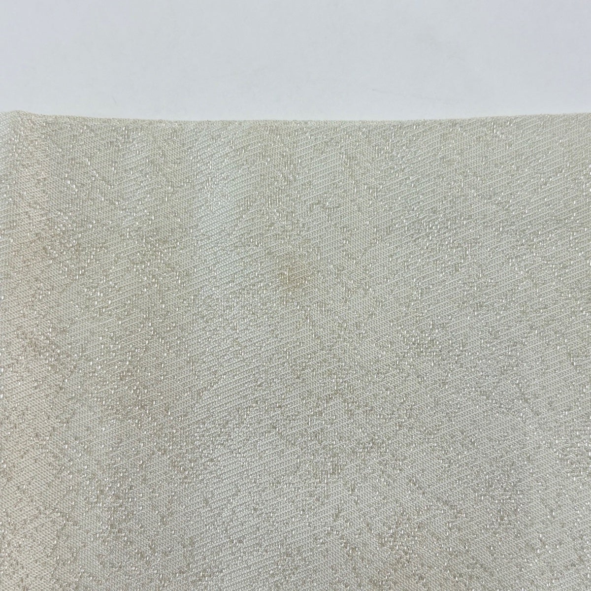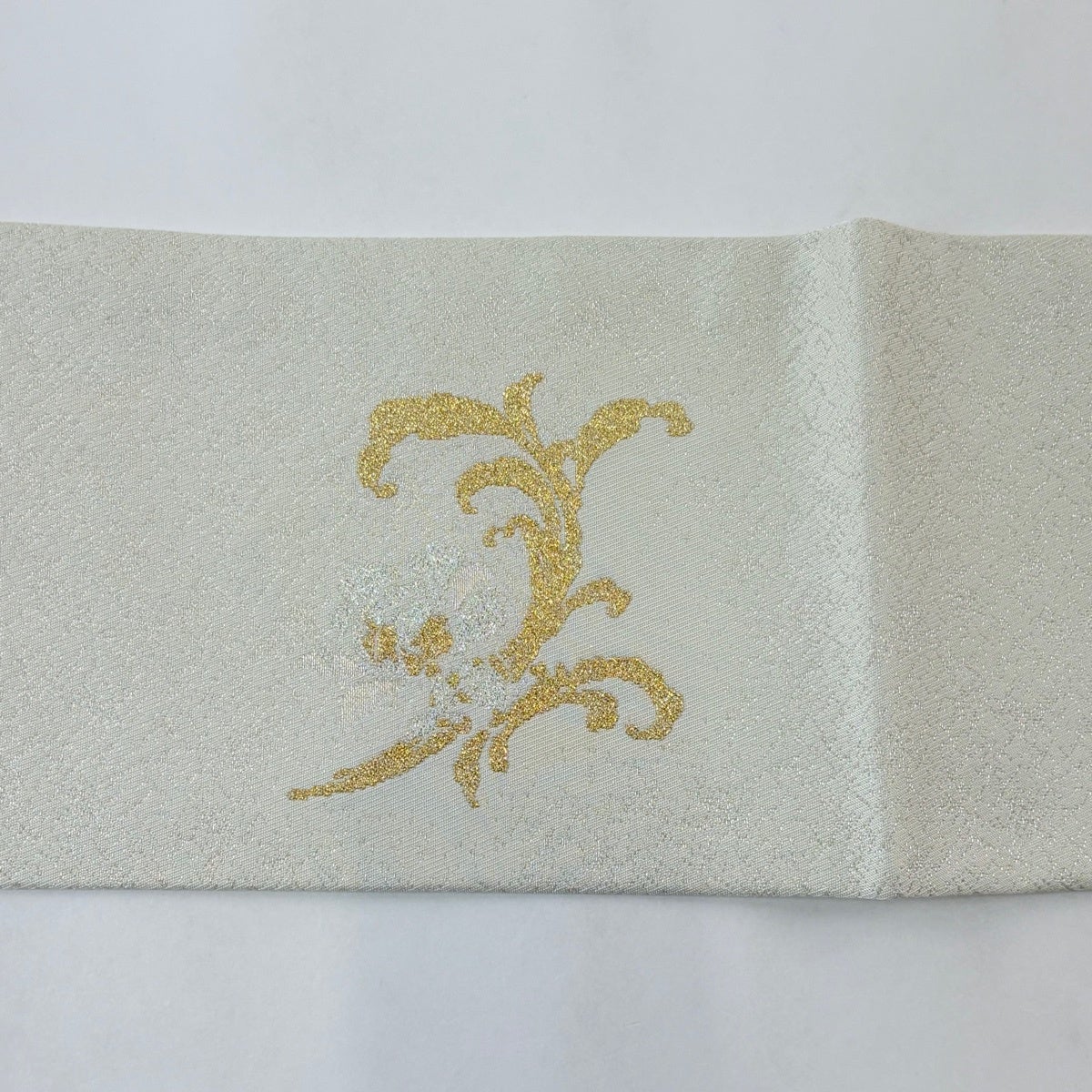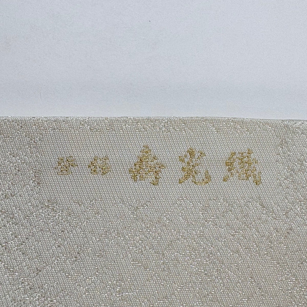 【美品】 名古屋帯 秀品 寿光織 草花 銀糸 箔 クリーム 正絹