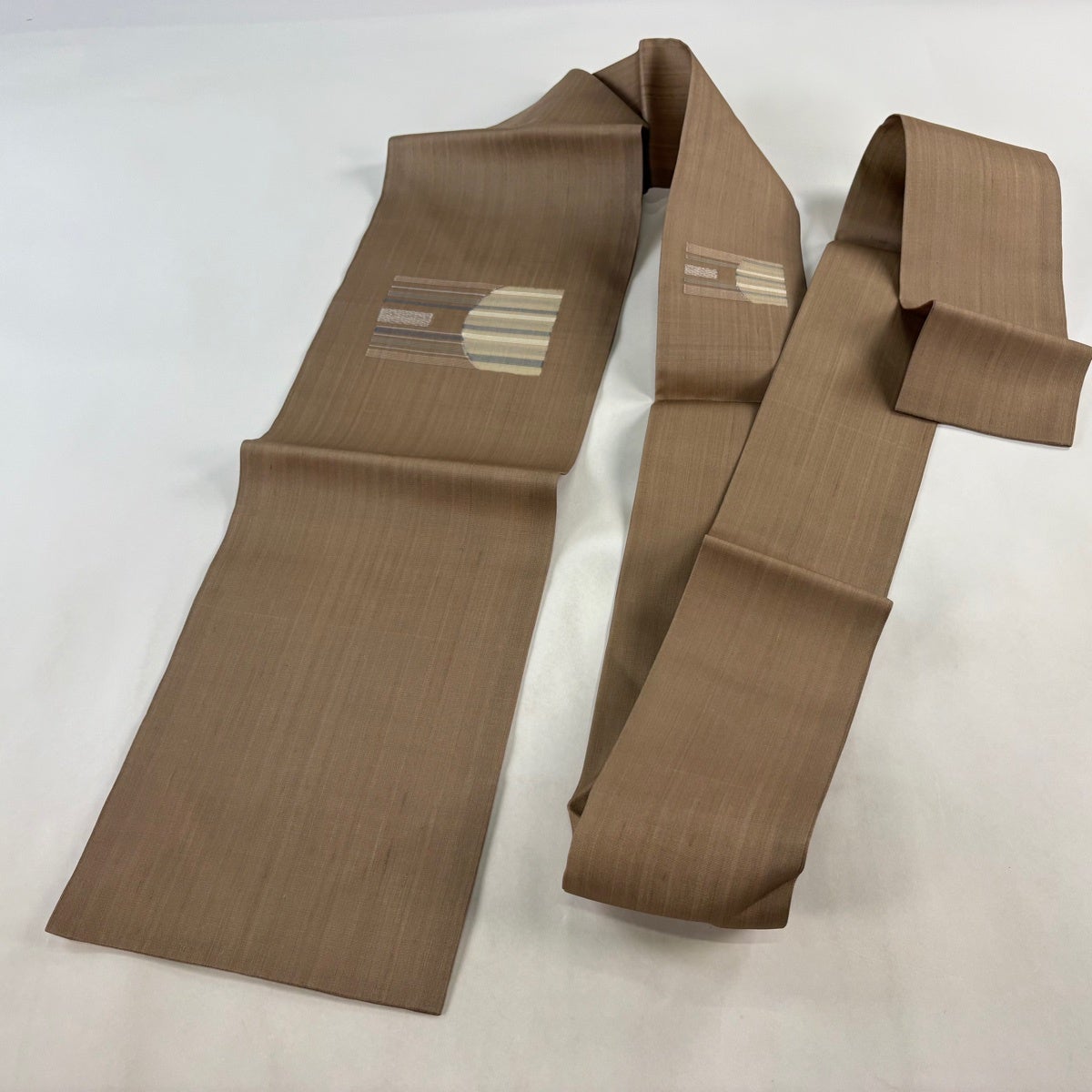 袋帯 秀品 霞 幾何学模様 箔 金糸 茶緑色 六通 正絹