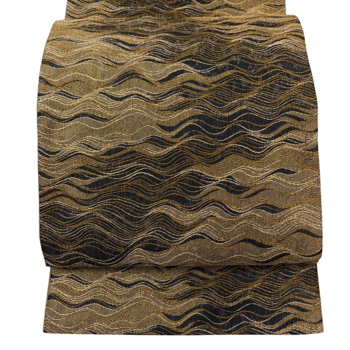 袋帯 秀品 華文 金糸 箔 山吹茶色 全通 正絹