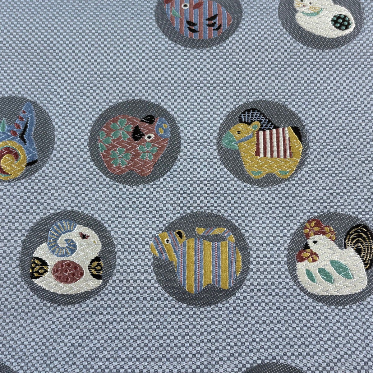 袋帯 秀品 市松 草花 金銀糸 唐織 灰色 六通 正絹