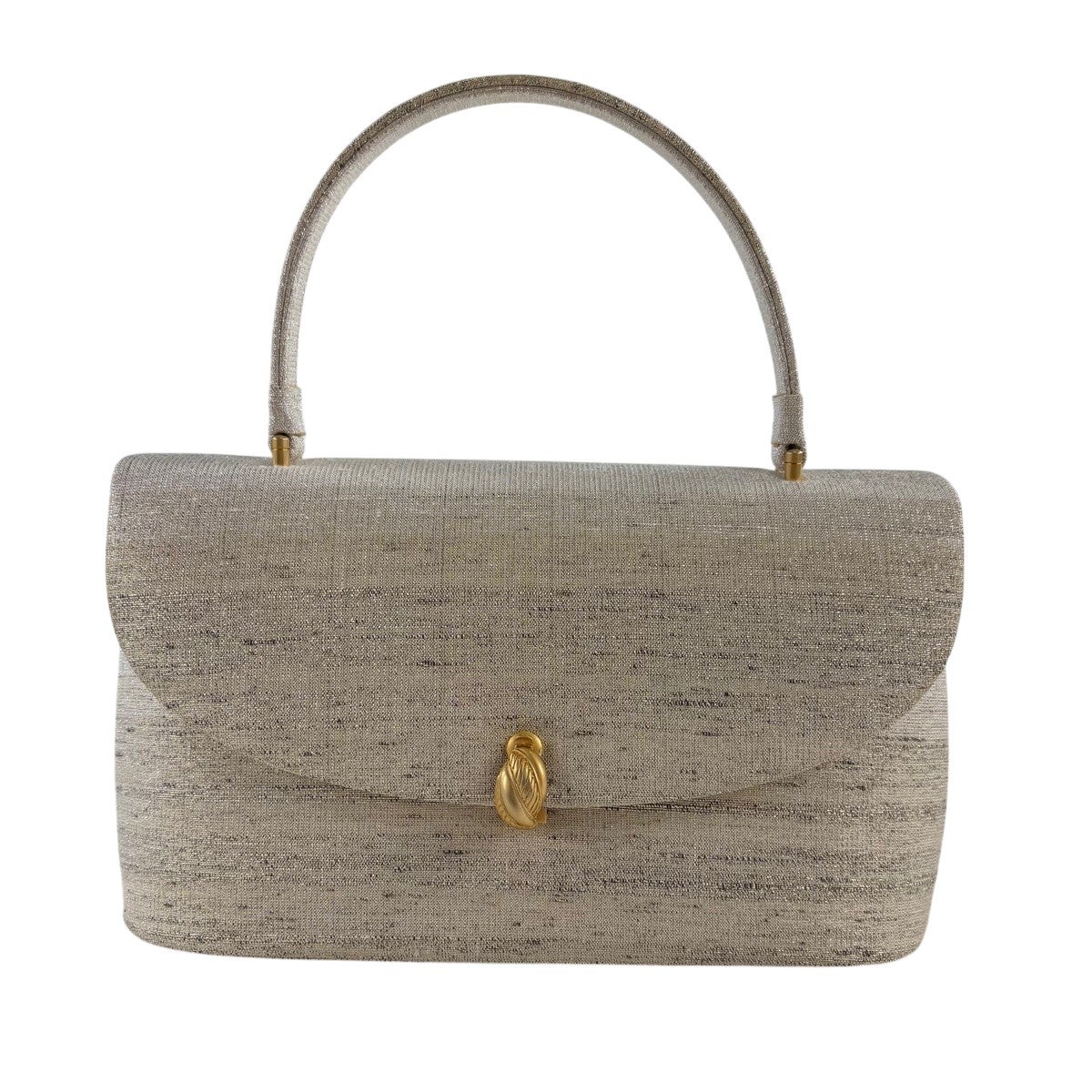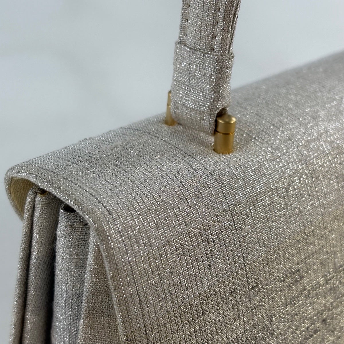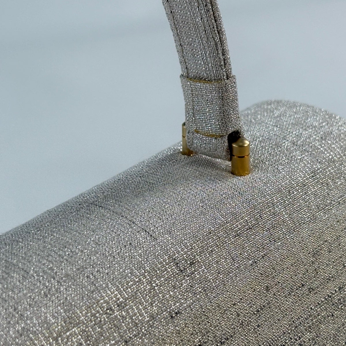 和装バッグ 優品 カジュアル 幾何学模様 箔 灰白 正絹 和装小物