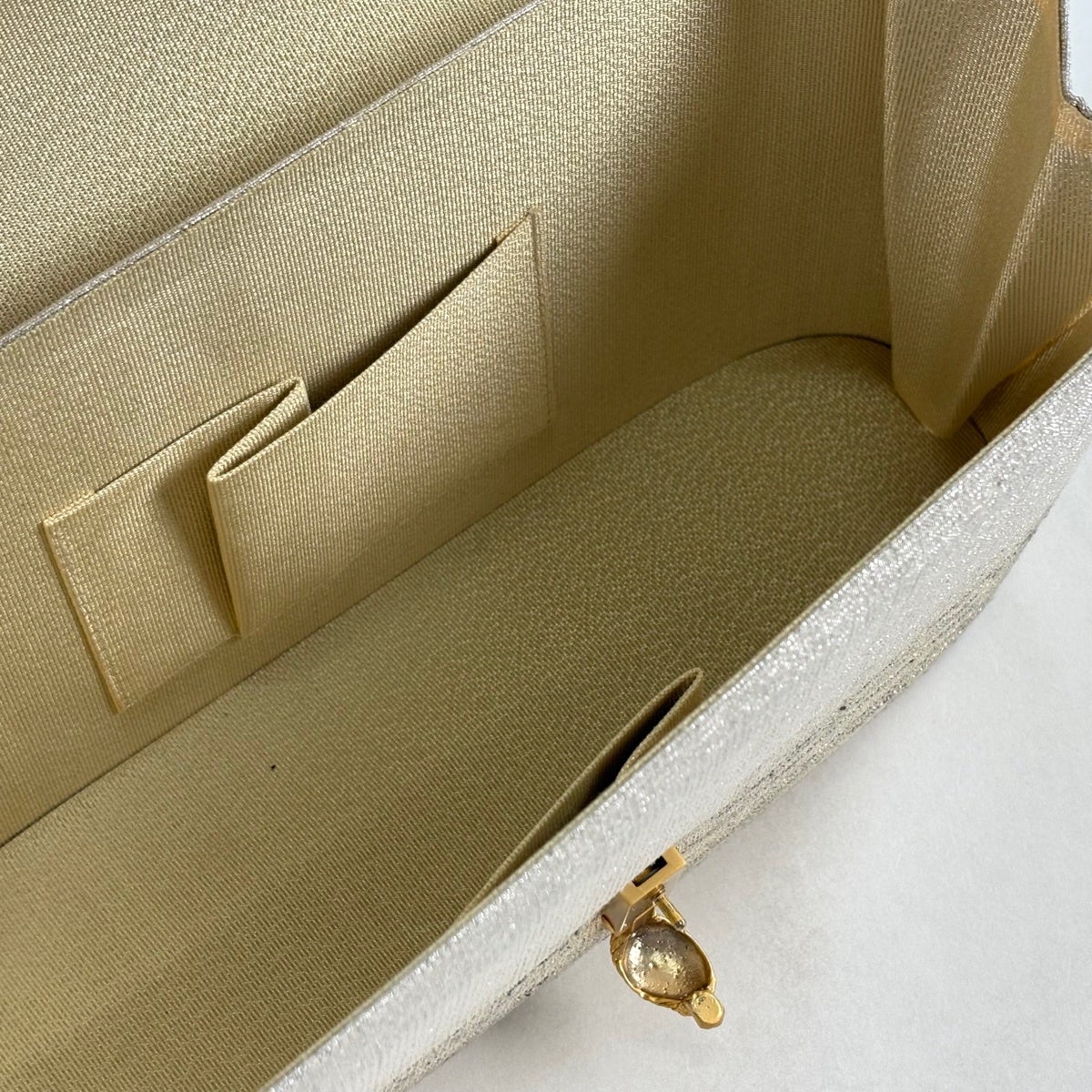 【美品】和装バッグ 優品 フォーマル 花菱 花柄 金糸 金色 正絹 和装小物