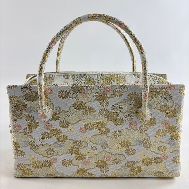 縦15cm 横28cm 奥行10cm お茶会やお食事会など、ちょっとしたお出かけにぴったりの和装バッグでございます。 素敵な訪問着や付下げに合わせて、ぜひお持ちくださいませ。 目立ったシミ汚れは無く、リユース品としては状態の良いお品でございます。 沢山の商品の中からご覧いただき誠にありがとうございます。