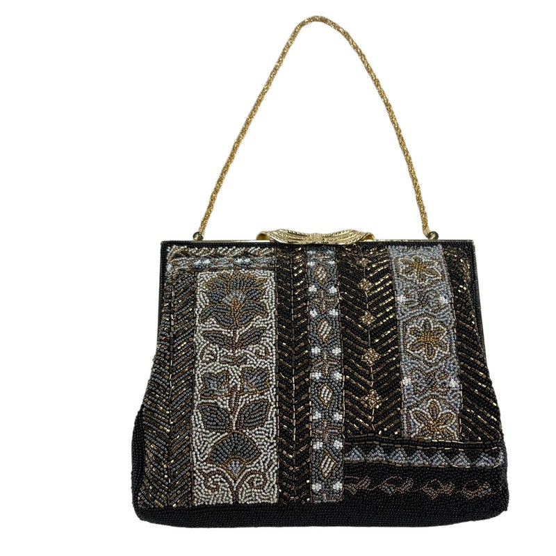 縦16cm 横19cm 奥行3cm 多彩のビーズを使用した可愛らしいビーズバッグです。 季節や着物の種類に関係なく使用することが出来るので一つ持っているととても便利です。 がま口に変色がありますが、まだまだご活用頂けると思われます。 沢山の商品の中からご覧いただき誠にありがとうございます。