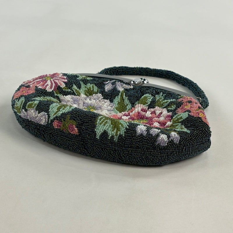 縦14cm 横24cm 奥行3cm 多彩のビーズを使用した可愛らしいビーズバッグです。 季節や着物の種類に関係なく使用することが出来るので一つ持っているととても便利です。 がま口にくすみやキズ、汚れがありますが、ご活用頂けると思われます。 沢山の商品の中からご覧いただき誠にありがとうございます。