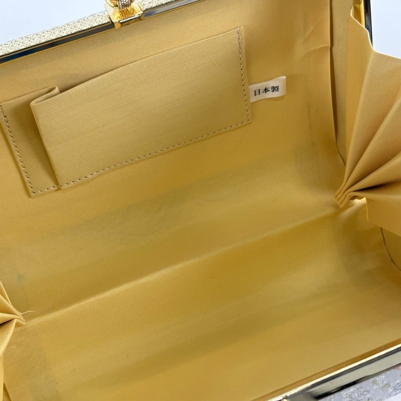 縦13cm 横21cm 奥行9cm 礼装向きの豪華な和装バッグでございます。 成人式だけでなく、結婚式などのフォーマルなお席にぴったりのお品物でございます。 側面エナメル部分に小さい汚れと凹み、金具部分に汚れがございますが、リユース品としては状態の良いお品でございます。 沢山の商品の中からご覧いただき誠にありがとうございます。