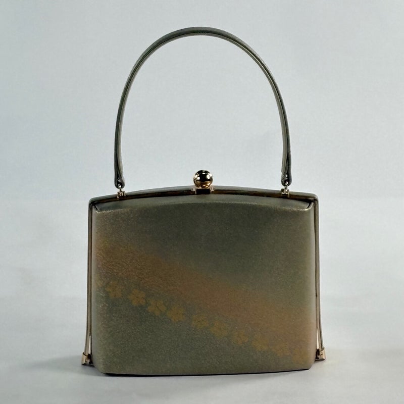 花菱や個性的な柄を唐織調で織り上げた トップクラスの草履・和装バッグメーカーとして高い信頼を得ている「金鷲」の和装バッグです。 モダンなお洒落感と洗練美が気品を彩るお品です。 縦13.5cm 横18cm 奥行8cm 表面、側面、持ち手部分などに金彩のれ、裏面に薄い傷がございますが、まだまだご活用頂けると思われます。 沢山の商品の中からご覧いただき誠にありがとうございます。
