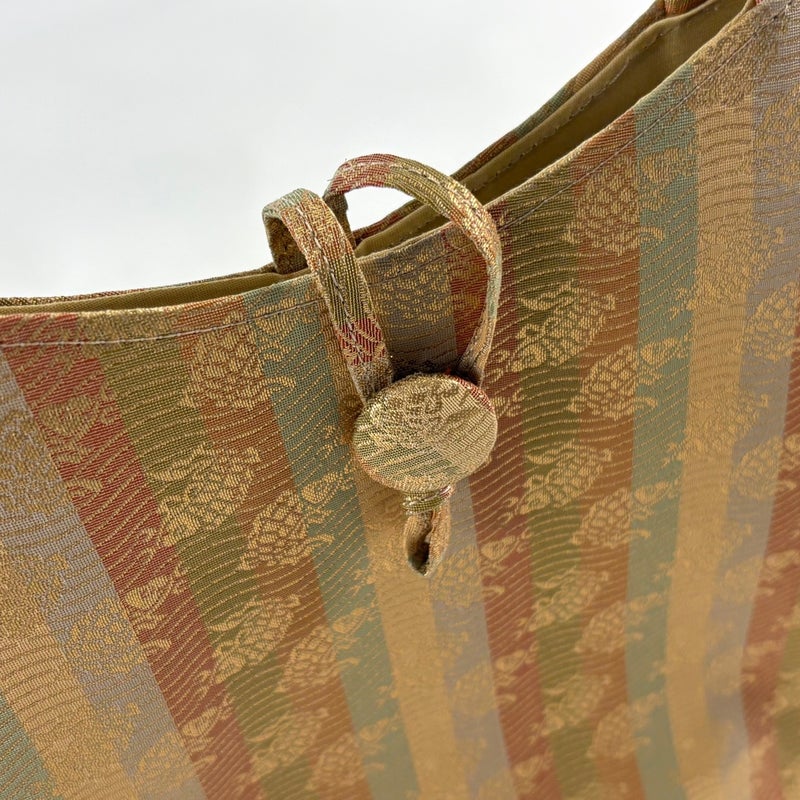 縦29cm 横31cm 奥行9cm お茶会やお食事会など、ちょっとしたお出かけにぴったりの和装バッグでございます。 素敵な訪問着や付下げに合わせて、ぜひお持ちくださいませ。 内側に小さなシミがございますが、まだまだご活用頂けると思われます。 沢山の商品の中からご覧いただき誠にありがとうございます。