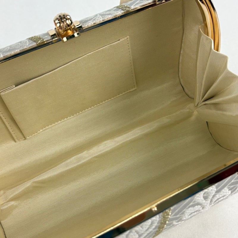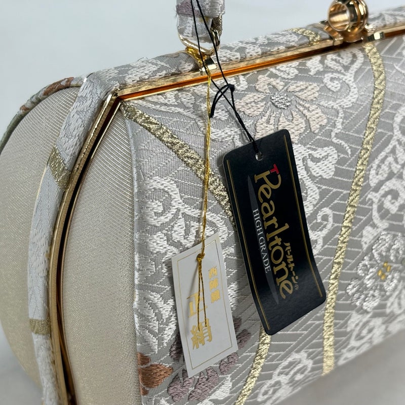 縦14cm 横24cm 奥行10cm フォーマルな装いにお似合いの和装バッグでございます。 パーティなどの華やかなシーンに最適なお品でございます。 表地の所々にシミがございますが、まだまだご活用頂けると思われます。 沢山の商品の中からご覧いただき誠にありがとうございます。