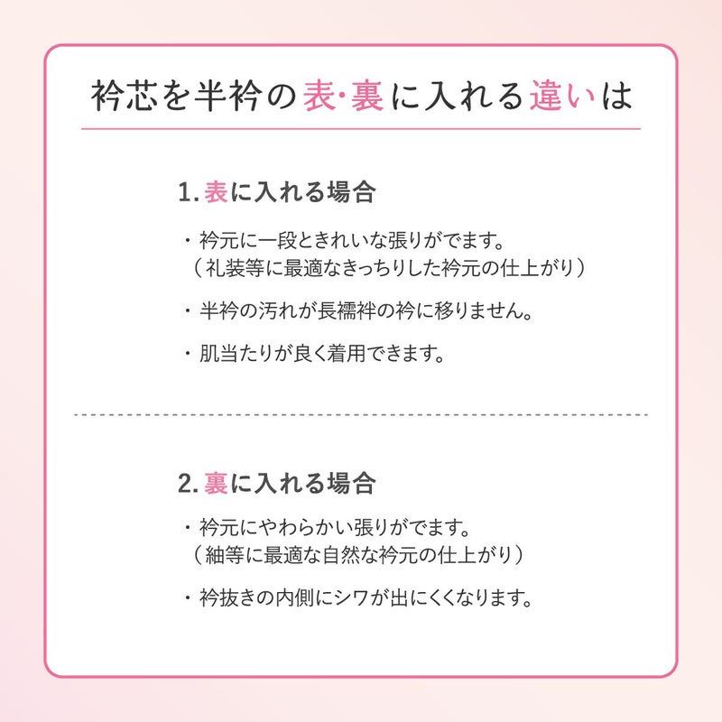【サイズ】長さ:約55cm 横幅:約5cm~6cm 【素材】ポリエステル 一級さん(国家検定一級技能士)考案の衿芯でございます。 2枚1組で使い、衿が凛とする優れもの 着付け初心者でも、崩れない襟元で美しい着姿を保てます。 ※長さ調節等可能となっておりますので、商品付属の説明書をご覧くださいませ。 【注意】 1.掲載商品は複数店舗で同時販売している為、ご注文時点で在庫がない場合がございます。予めご了承ください。 2.新品商品の為、当商品の不良品以外の理由での返品は不可となります。 詳細なサイズ・仕様などについては、購入前に事前にお問い合わせください。