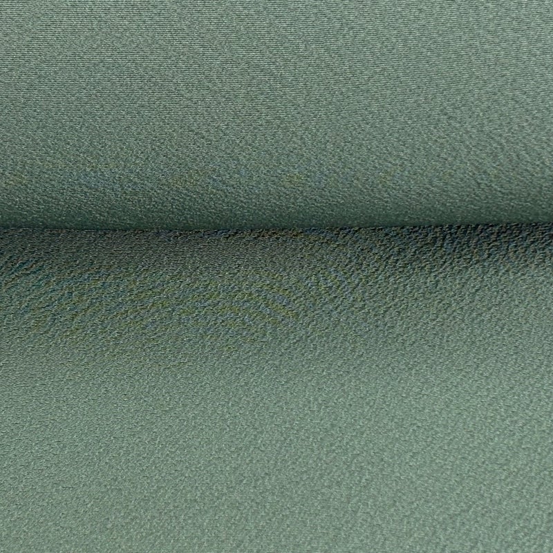 緑の色無地反物でございます。 紋をつけない色無地は街着感覚で着られ、一つ紋を付ければ正式なお茶会や祝賀会などに着られる略礼装となり、 三つ紋を付ければ付下げや紋の入らない訪問着よりも格は高くなります。 全体を広げての詳細な状態確認・採寸は一切行っておりません。 また、リユース品で仕立て専門業者ではないため用途については断言できかねます。 ご了承いただいた上でのご購入をよろしくお願いいたします。