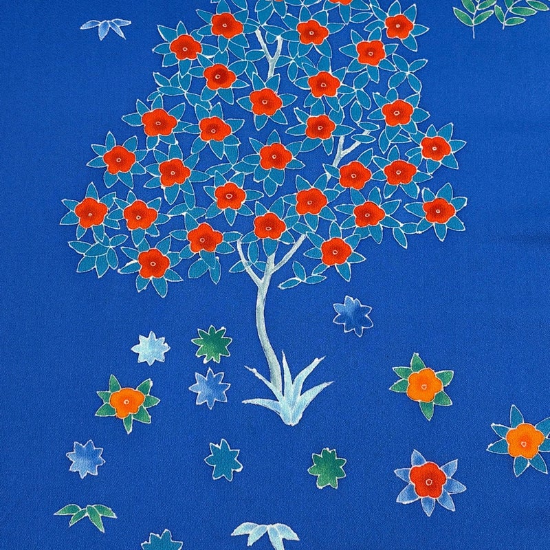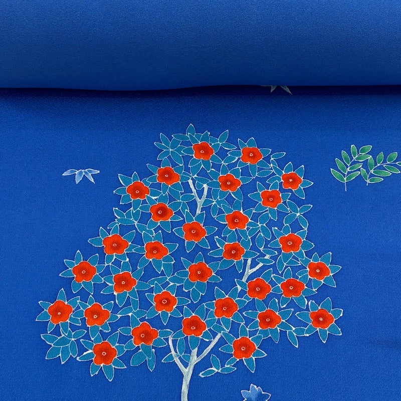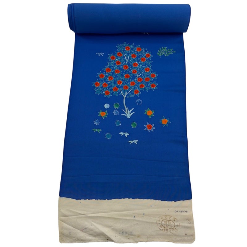 反物 秀品 付下げ 樹木 草花 青 正絹