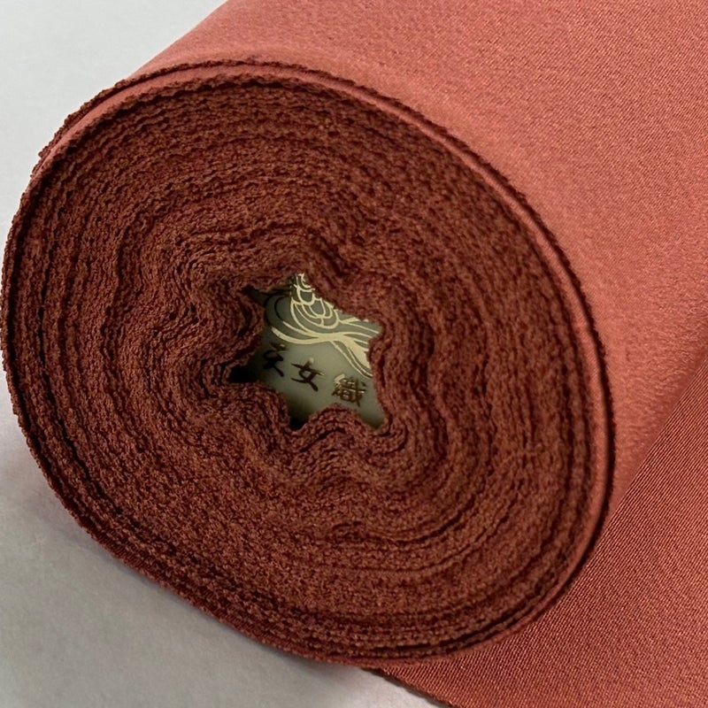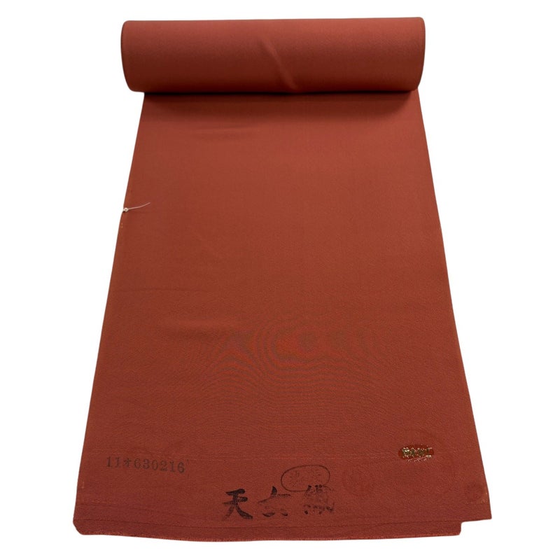 赤茶の色無地反物でございます。 紋をつけない色無地は街着感覚で着られ、一つ紋を付ければ正式なお茶会や祝賀会などに着られる略礼装となり、 三つ紋を付ければ付下げや紋の入らない訪問着よりも格は高くなります。 全体を広げての詳細な状態確認・採寸は一切行っておりません。 また、リユース品で仕立て専門業者ではないため用途については断言できかねます。 ご了承いただいた上でのご購入をよろしくお願いいたします。