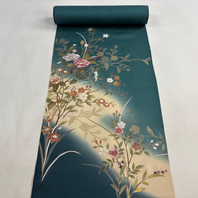 素敵な色合いの付下げの反物でございます。 華やぎの袋帯で披露宴のお呼ばれなどのパーティーや、お食事会などに。 帯合わせ次第でフォーマルから、カジュアルなパーティーにも 様々なシーンでご着用いただける特別な一品です。 全体を広げての詳細な状態確認・採寸は一切行っておりません。 また、リユース品で仕立て専門業者ではないため用途については断言できかねます。 ご了承いただいた上でのご購入をよろしくお願いいたします。