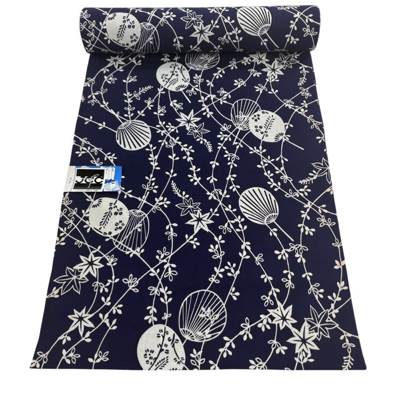 反物 優品 浴衣 団扇 濃紺 綿