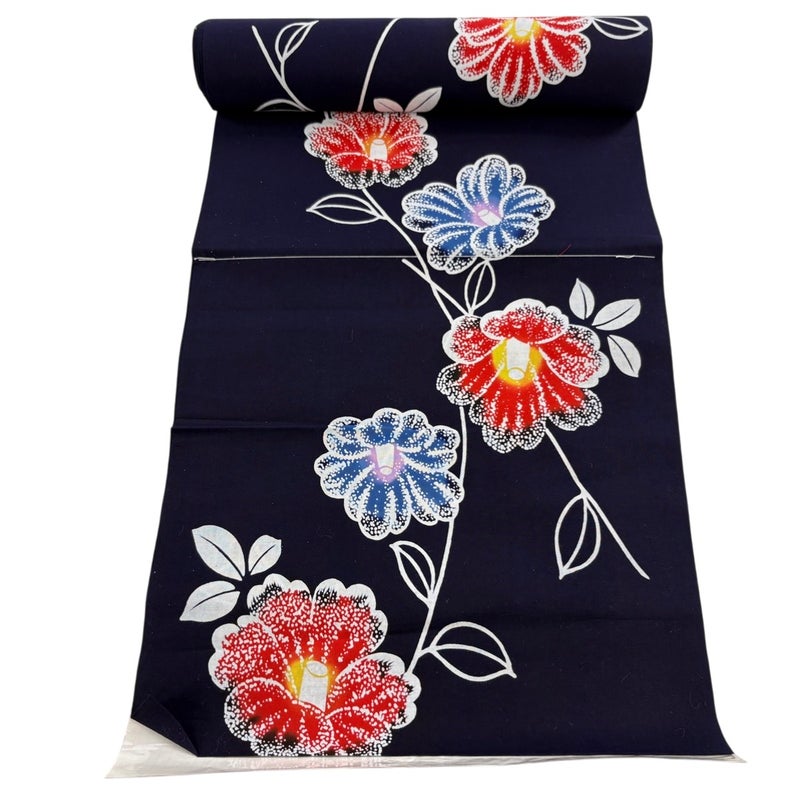 夏のお洒落着として、夏祭りや花火大会、盆踊りなど多くの場面でお召し頂ける浴衣の反物です。 小物をアレンジすることで何通りにも着こなすことが出来る一品です。 型にとらわれず気軽にコーディネート出来る魅力をお楽しみください。 全体を広げての詳細な状態確認・採寸は一切行っておりません。 また、リユース品で仕立て専門業者ではないため用途については断言できかねます。 ご了承いただいた上でのご購入をよろしくお願いいたします。 沢山の商品の中からご覧いただき誠にありがとうございます。