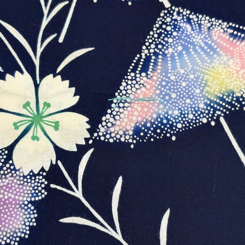 反物 優品 浴衣 番傘 草花 濃紺 綿