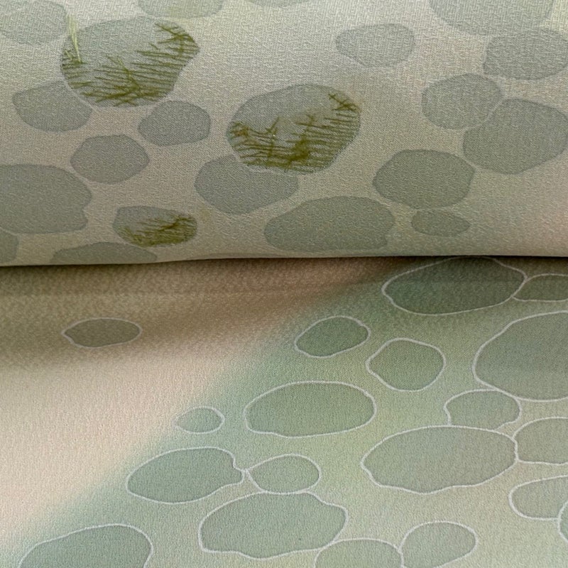 しっとりとした色合いの付下げの反物でございます。 華やぎの袋帯で披露宴のお呼ばれなどのパーティーや、お食事会などに。 帯合わせ次第でフォーマルから、カジュアルなパーティーにも 様々なシーンでご着用いただける特別な一品です。 全体を広げての詳細な状態確認・採寸は一切行っておりません。 また、リユース品で仕立て専門業者ではないため用途については断言できかねます。 ご了承いただいた上でのご購入をよろしくお願いいたします。 沢山の商品の中からご覧いただき誠にありがとうございます。