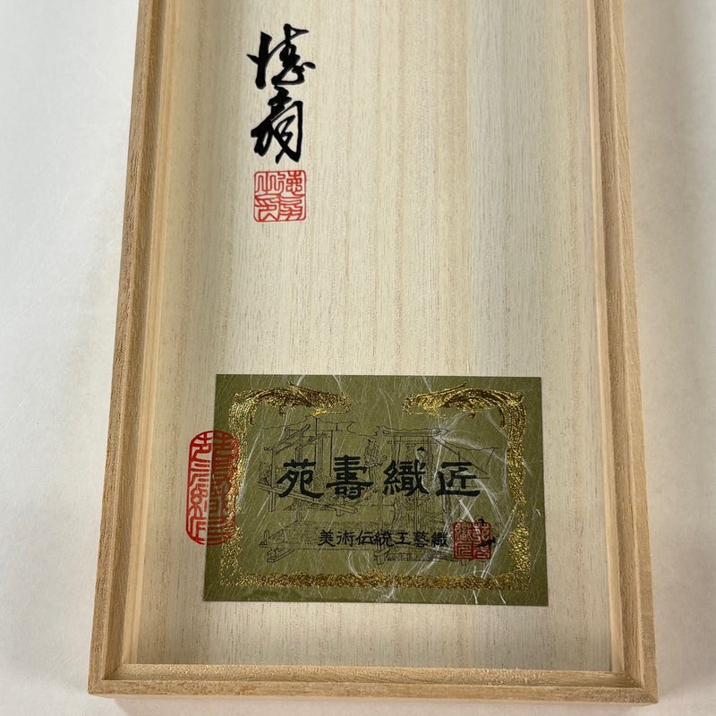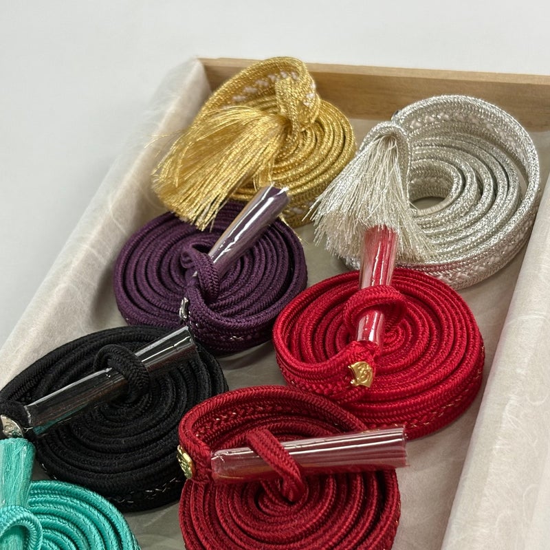 300年以上の歴史を誇る京都洛中の伝統工芸士藤林徳扇氏のとても素晴らしい小物セットでございます。 重ね衿は金色と銀色の両面使いになっております。 帯締めはお好きな2本を組み合わせてのご使用となり、全12色あるので66通りの色合わせが楽しめます。 帯揚げは付属しておりません。 目立ったシミ汚れは無くリユース品としては状態の良いお品でございます。 ご使用方法の冊子もついておりますが、結び紐がございません。 沢山の商品の中からご覧いただき誠にありがとうございます。