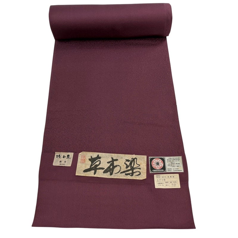 茶紫色の色無地反物でございます。 紋をつけない色無地は街着感覚で着られ、一つ紋を付ければ正式なお茶会や祝賀会などに着られる略礼装となり、 三つ紋を付ければ付下げや紋の入らない訪問着よりも格は高くなります。 全体を広げての詳細な状態確認・採寸は一切行っておりません。 また、リユース品で仕立て専門業者ではないため用途については断言できかねます。 ご了承いただいた上でのご購入をよろしくお願いいたします。