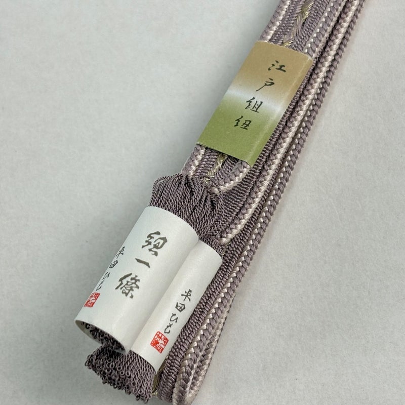 長さ164cm 薄紫色に金糸を合わせた帯締めでございます。 帯締めのルーツは江戸時代まで遡り、今では着物に無くてはならない小物の一つ。 季節や着物に合わせて、自分だけの組み合わせをお楽しみください。 目立ったシミ汚れは無くリユース品としては状態の良いお品でございます。 沢山の商品の中からご覧いただき誠にありがとうございます。