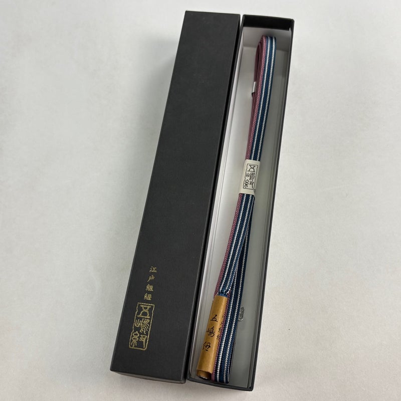 長さ約162cm 初心者から着物通まで厚く支持される、帯締めのトップブランドのひとつ、 五嶋敏太郎により確立された組紐でございます。 戦国時代、兜の緒に使われていた組紐の技法で組まれています。 締めるとぎゅっと締まり、手組みなので動きにあわせて伸び縮みします。 帯締めを少し変えて、着物ライフを楽しんでみてはいかがでしょうか。 目立ったシミ汚れ無く、リユース品としては良い状態でございます。 沢山の商品の中からご覧いただき誠にありがとうございます。 帯締めを少し変えて、着物ライフを楽しんでみてはいかがでしょうか。