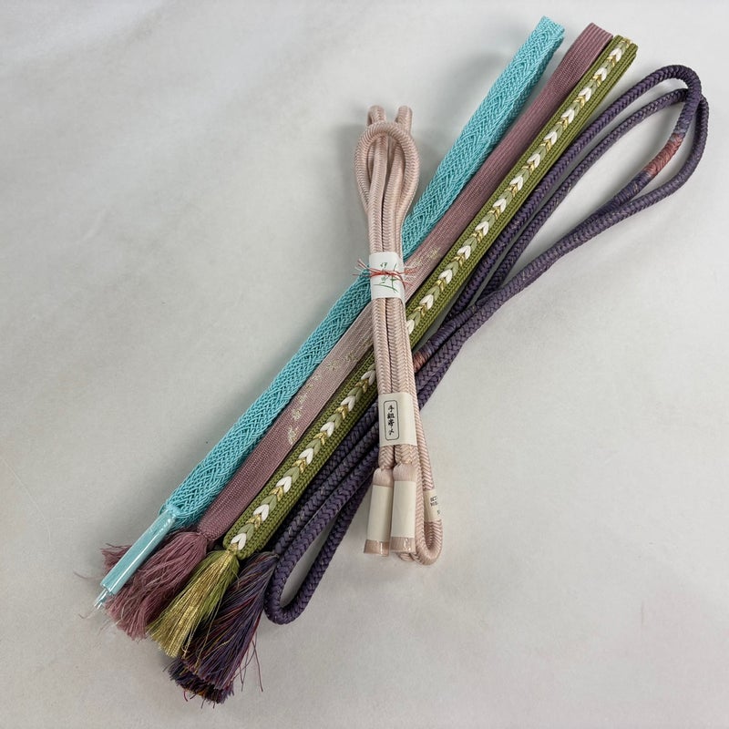 お買い得な帯締めの5本セットです。 色や太さなど様々です。 1点ずつ丁寧に細部まで状態確認しておりません。 リユース品ですので、多少の傷みや使用感もございますが、 いずれもあまり目立たず、まだまだお使いいただけると思います。 素材は主に正絹です。(全ての素材の確認はしておりません。) 沢山の商品の中からご覧いただき誠にありがとうございます。