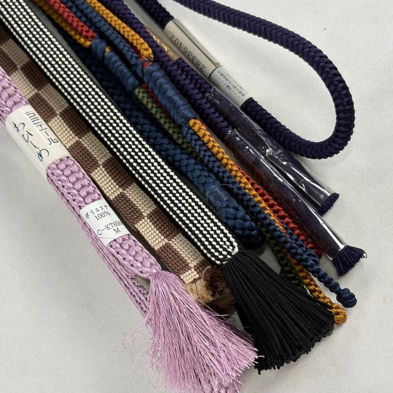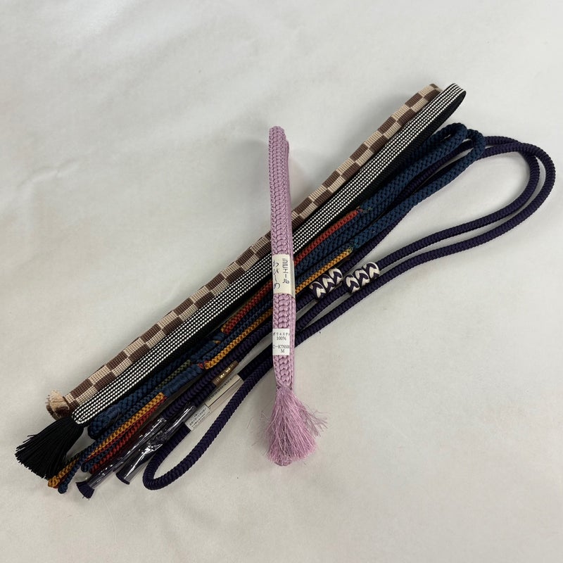 お買い得な帯締めの5本セットです。 色や太さなど様々です。 1点ずつ丁寧に細部まで状態確認しておりません。 リユース品ですので、多少の傷みや使用感もございますが、 いずれもあまり目立たず、まだまだお使いいただけると思います。 素材は主に正絹です。(全ての素材の確認はしておりません。)