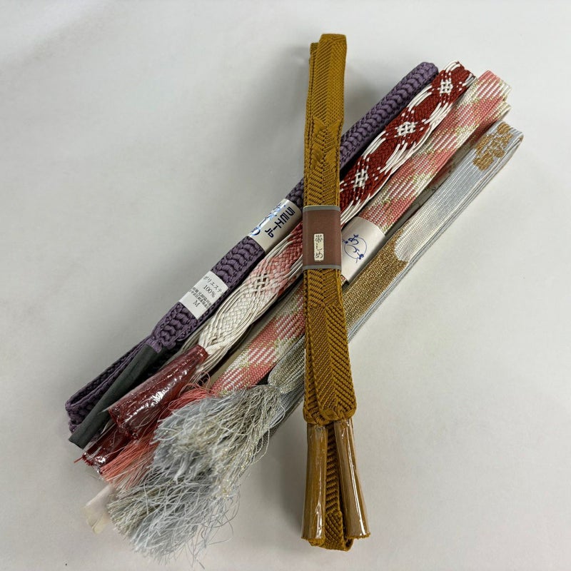 お買い得な帯締めの5本セットです。 色や太さなど様々です。 1点ずつ丁寧に細部まで状態確認しておりません。 リユース品ですので、多少の傷みや使用感もございますが、 いずれもあまり目立たず、まだまだお使いいただけると思います。 素材は主に正絹です。(全ての素材の確認はしておりません。)