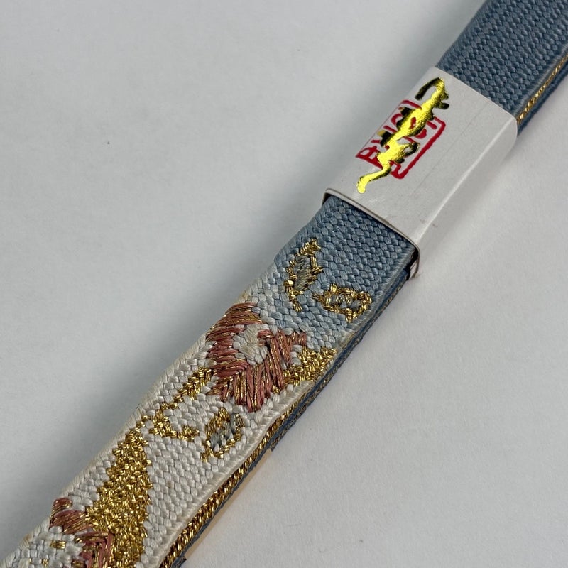 【美品】帯締め 優品 フォーマル 草花 金糸 青灰色 正絹 和装小物