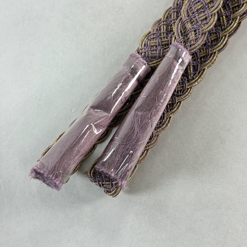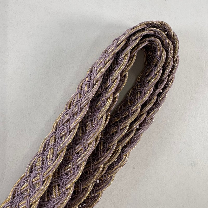 長さ164cm 灰紫に金糸で織り込まれた、シンプルで使いやすい帯締めでございます。 帯締めのルーツは江戸時代まで遡り、今では着物に無くてはならない小物の一つ。 季節や着物に合わせて、自分だけの組み合わせをお楽しみください。 目立ったシミ汚れは無く、リユース品としては状態の良いお品でございます。 沢山の商品の中からご覧いただき誠にありがとうございます。