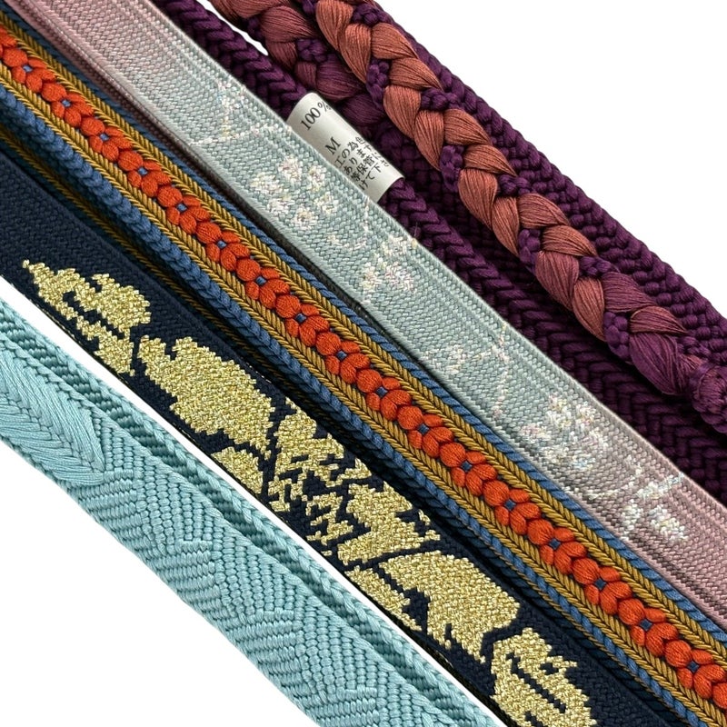 お買い得な帯締めの5本セットです。 色や太さなど様々です。 1点ずつ丁寧に細部まで状態確認しておりません。 リユース品ですので、多少の傷みや使用感もございますが、 いずれもあまり目立たず、まだまだお使いいただけると思います。 素材は主に正絹です。(全ての素材の確認はしておりません。)