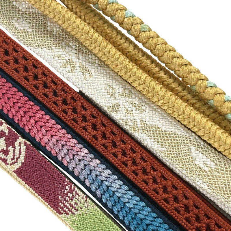 お買い得な帯締めの5本セットです。 色や太さなど様々です。 1点ずつ丁寧に細部まで状態確認しておりません。 リユース品ですので、多少の傷みや使用感もございますが、 いずれもあまり目立たず、まだまだお使いいただけると思います。 素材は主に正絹です。(全ての素材の確認はしておりません。)