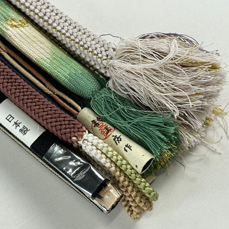 お買い得な帯締めの5本セットです。 色や太さなど様々です。 1点ずつ丁寧に細部まで状態確認しておりません。 リユース品ですので、多少の傷みや使用感もございますが、 いずれもあまり目立たず、まだまだお使いいただけると思います。 素材は主に正絹です。(全ての素材の確認はしておりません。) 沢山の商品の中からご覧いただき誠にありがとうございます。