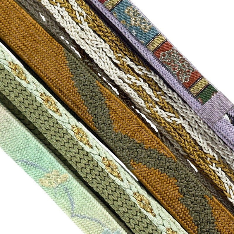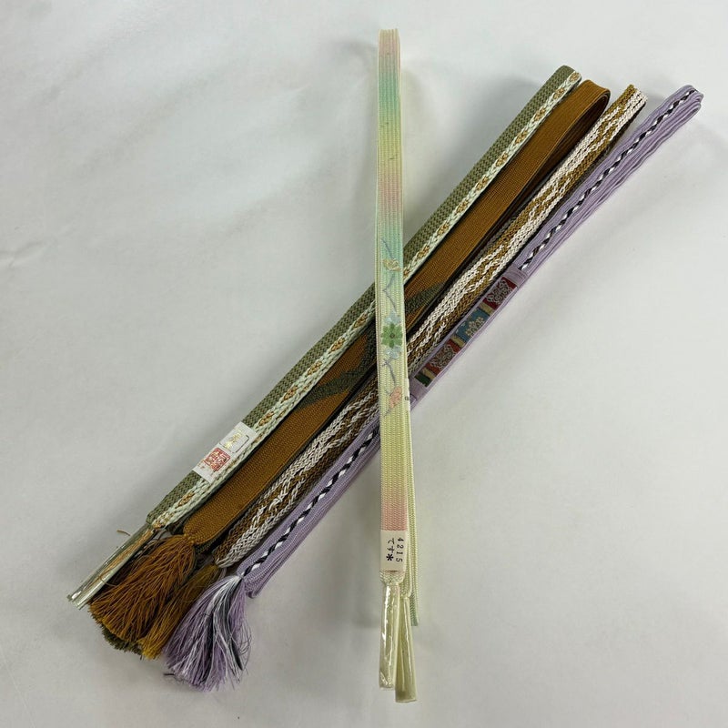 お買い得な帯締めの5本セットです。 色や太さなど様々です。 1点ずつ丁寧に細部まで状態確認しておりません。 リユース品ですので、多少の傷みや使用感もございますが、 いずれもあまり目立たず、まだまだお使いいただけると思います。 素材は主に正絹です。(全ての素材の確認はしておりません。) 沢山の商品の中からご覧いただき誠にありがとうございます。