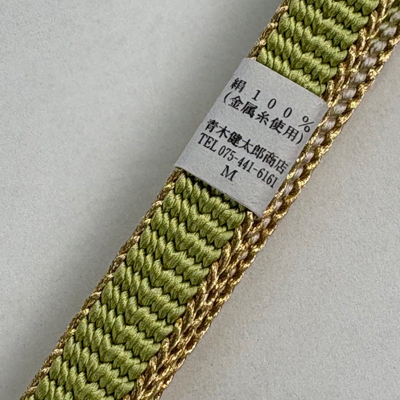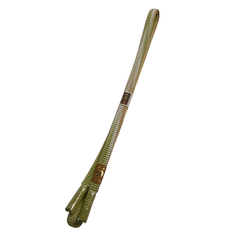 【美品】帯締め 優品 縞 金糸 薄緑 正絹 和装小物