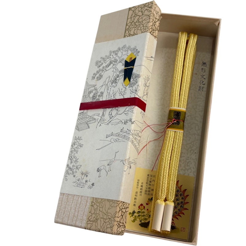 長さ147cm 上野にある老舗「道明」の帯締めでございます。 呉服関係者や着物の愛好家が一目置くほどの老舗で、 帯締めは道明が一番と厚い信頼が寄せられています。 外装の箱は少し汚れておりますが、商品の状態は大変良好な状態です。 沢山の商品の中からご覧いただき誠にありがとうございます。