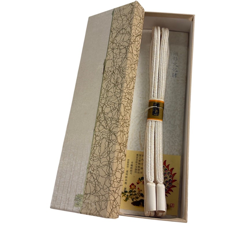 長さ150cm 上野にある老舗「道明」の帯締めでございます。 呉服関係者や着物の愛好家が一目置くほどの老舗で、 帯締めは道明が一番と厚い信頼が寄せられています。 所々にシミがございますが、まだまだご活用頂けると思われます。 箱は破損やシミがございます。 沢山の商品の中からご覧いただき誠にありがとうございます。