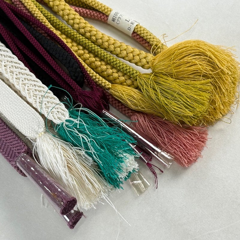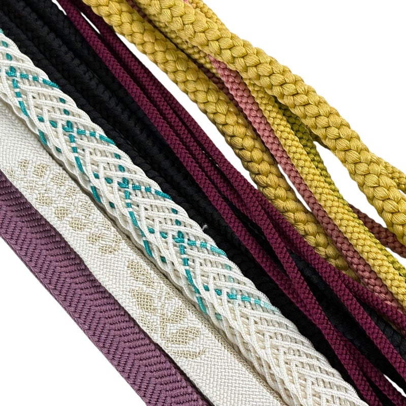 お買い得な帯締めの5本セットです。 色や太さなど様々です。 1点ずつ丁寧に細部まで状態確認しておりません。 リユース品ですので、多少の傷みや使用感もございますが、 いずれもあまり目立たず、まだまだお使いいただけると思います。 素材は主に正絹です。(全ての素材の確認はしておりません。)
