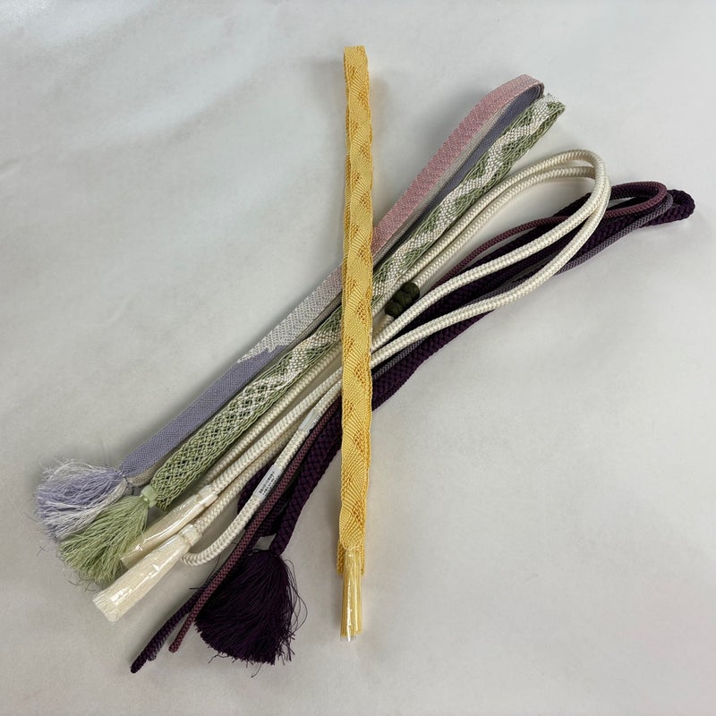 お買い得な帯締めの5本セットです。 色や太さなど様々です。 1点ずつ丁寧に細部まで状態確認しておりません。 リユース品ですので、多少の傷みや使用感もございますが、 いずれもあまり目立たず、まだまだお使いいただけると思います。 素材は主に正絹です。(全ての素材の確認はしておりません。) 沢山の商品の中からご覧いただき誠にありがとうございます。