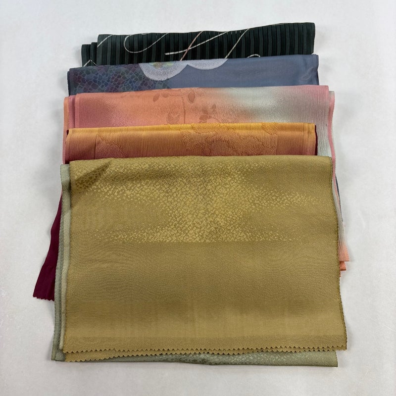 お買い得な帯揚げ5枚セットです。 色や柄など様々です。 1点ずつ丁寧に細部まで状態確認しておりません。 リユース品ですので、多少の傷みや使用感もございますが、 いずれもあまり目立たず、まだまだお使いいただけると思います。 素材は主に正絹です。(全ての素材の確認はしておりません。)