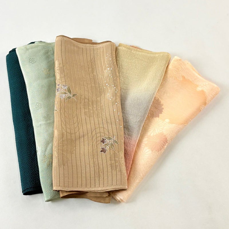 お買い得な帯揚げ5枚セットです。 色や柄など様々です。 1点ずつ丁寧に細部まで状態確認しておりません。 リユース品ですので、多少の傷みや使用感もございますが、 いずれもあまり目立たず、まだまだお使いいただけると思います。 素材は主に正絹です。(全ての素材の確認はしておりません。)