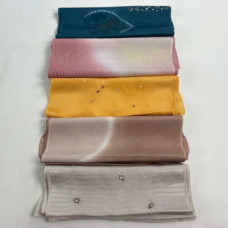お買い得な帯揚げ5枚セットです。 色や柄など様々です。 1点ずつ丁寧に細部まで状態確認しておりません。 リユース品ですので、多少の傷みや使用感もございますが、 いずれもあまり目立たず、まだまだお使いいただけると思います。 素材は主に正絹です。(全ての素材の確認はしておりません。)