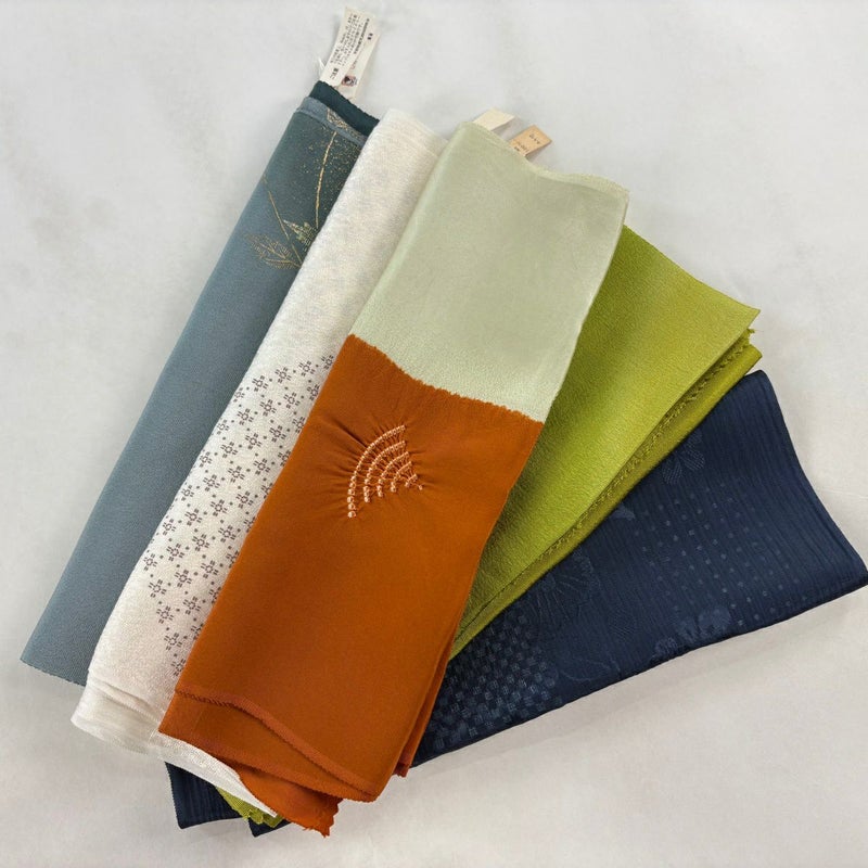 お買い得な帯揚げ5枚セットです。 色や柄など様々です。 1点ずつ丁寧に細部まで状態確認しておりません。 リユース品ですので、多少の傷みや使用感もございますが、 いずれもあまり目立たず、まだまだお使いいただけると思います。 素材は主に正絹です。(全ての素材の確認はしておりません。)