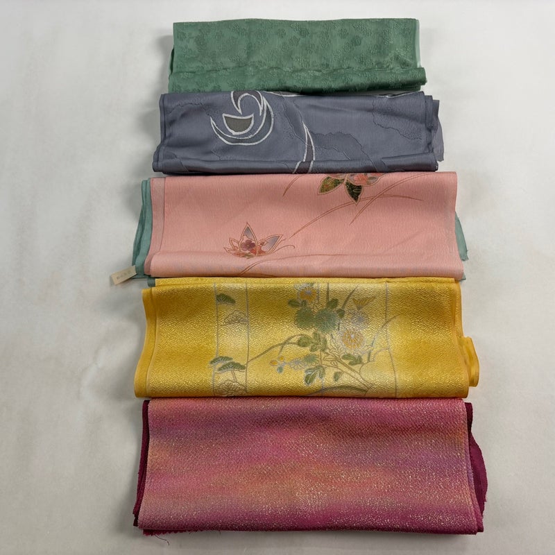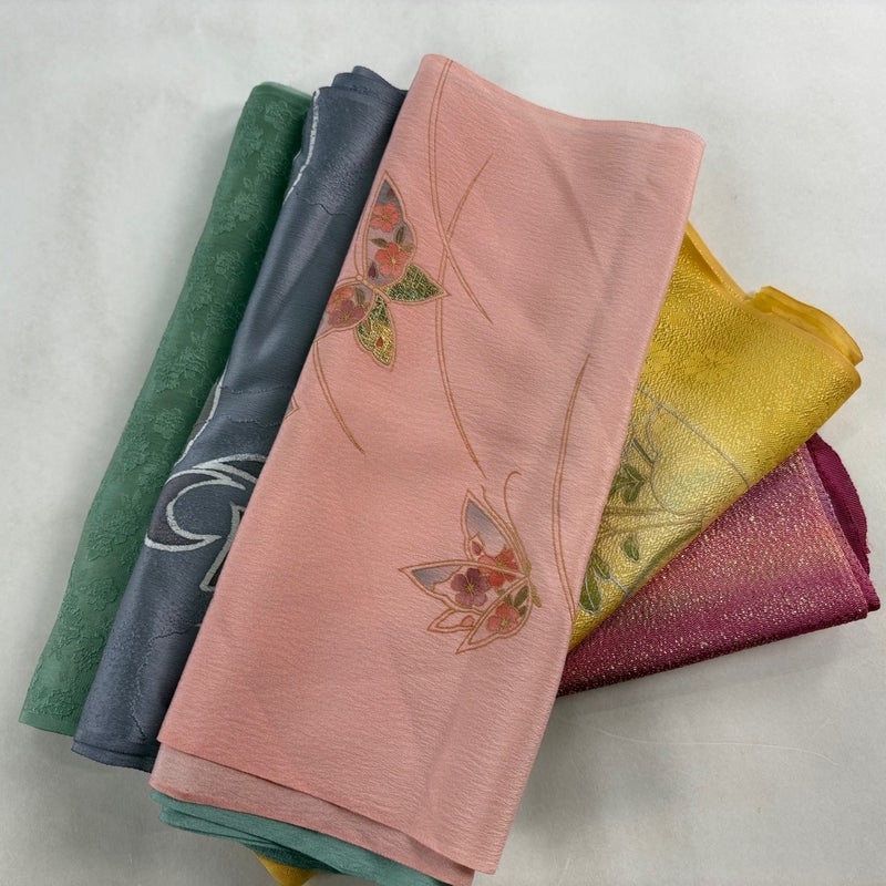 お買い得な帯揚げ5枚セットです。 色や柄など様々です。 1点ずつ丁寧に細部まで状態確認しておりません。 リユース品ですので、多少の傷みや使用感もございますが、 いずれもあまり目立たず、まだまだお使いいただけると思います。 素材は主に正絹です。(全ての素材の確認はしておりません。)
