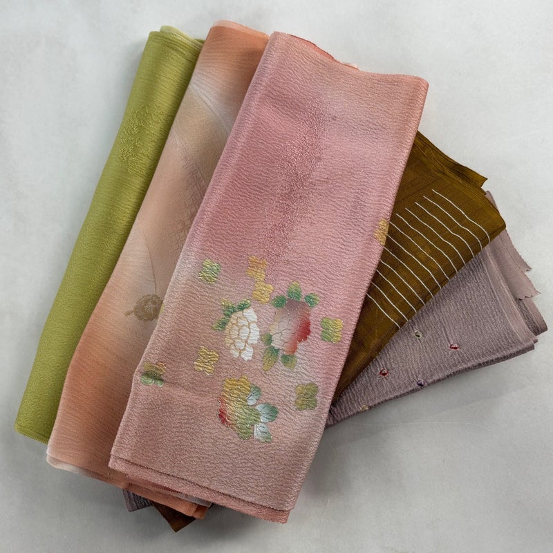 お買い得な帯揚げ5枚セットです。 色や柄など様々です。 1点ずつ丁寧に細部まで状態確認しておりません。 リユース品ですので、多少の傷みや使用感もございますが、 いずれもあまり目立たず、まだまだお使いいただけると思います。 素材は主に正絹です。(全ての素材の確認はしておりません。)