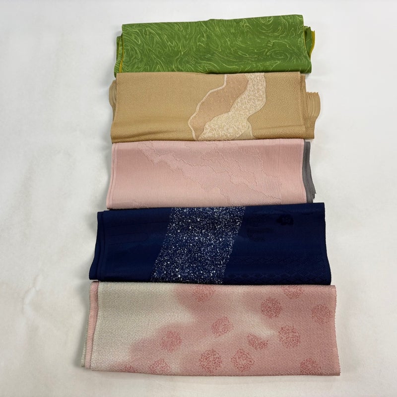 お買い得な帯揚げ5枚セットです。 色や柄など様々です。 1点ずつ丁寧に細部まで状態確認しておりません。 リユース品ですので、多少の傷みや使用感もございますが、 いずれもあまり目立たず、まだまだお使いいただけると思います。 素材は主に正絹です。(全ての素材の確認はしておりません。)