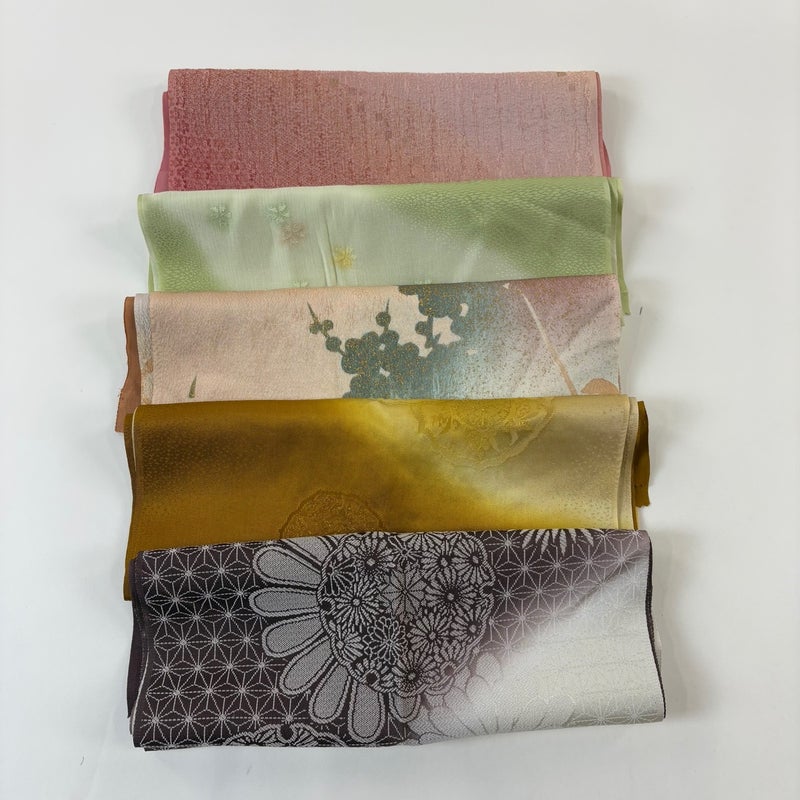 お買い得な帯揚げ5枚セットです。 色や柄など様々です。 1点ずつ丁寧に細部まで状態確認しておりません。 リユース品ですので、多少の傷みや使用感もございますが、 いずれもあまり目立たず、まだまだお使いいただけると思います。 素材は主に正絹です。(全ての素材の確認はしておりません。)