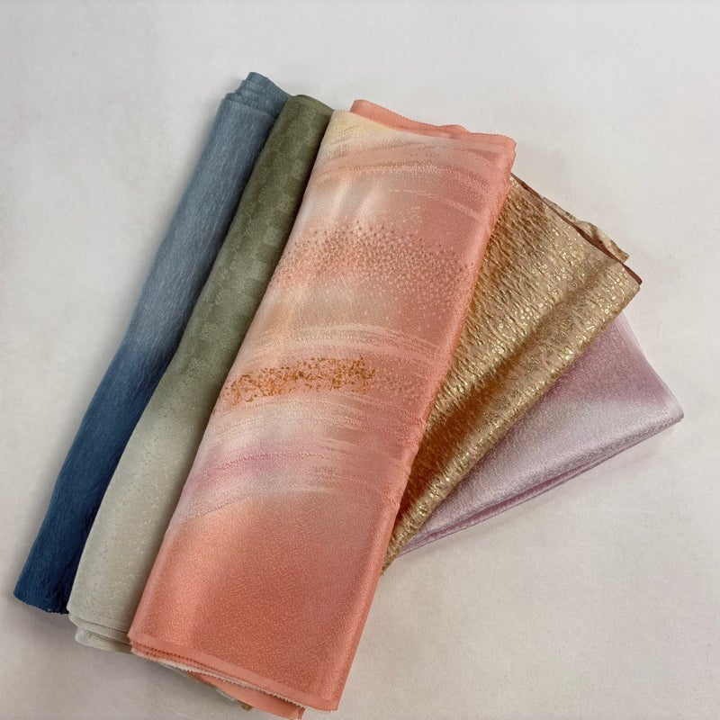 お買い得な帯揚げ5枚セットです。 色や柄など様々です。 1点ずつ丁寧に細部まで状態確認しておりません。 リユース品ですので、多少の傷みや使用感もございますが、 いずれもあまり目立たず、まだまだお使いいただけると思います。 素材は主に正絹です。(全ての素材の確認はしておりません。)